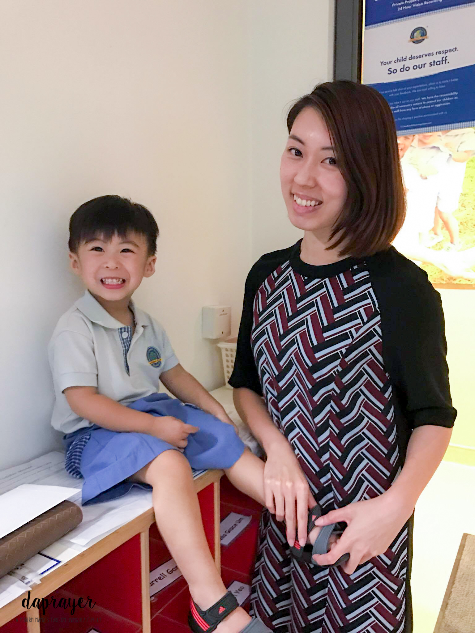 It’s such a joy watching Laurent’s little face light up when he catches sight of us. He will announce to his classmates (if there are still any left by the time we reach there) that mummy and daddy are here. His super cute classmates will follow him to crowd around us and call us mummy and daddy as well 😀 It’s really hilarious, especially when Laurent tries to keep his classmates away when they try to hug us.