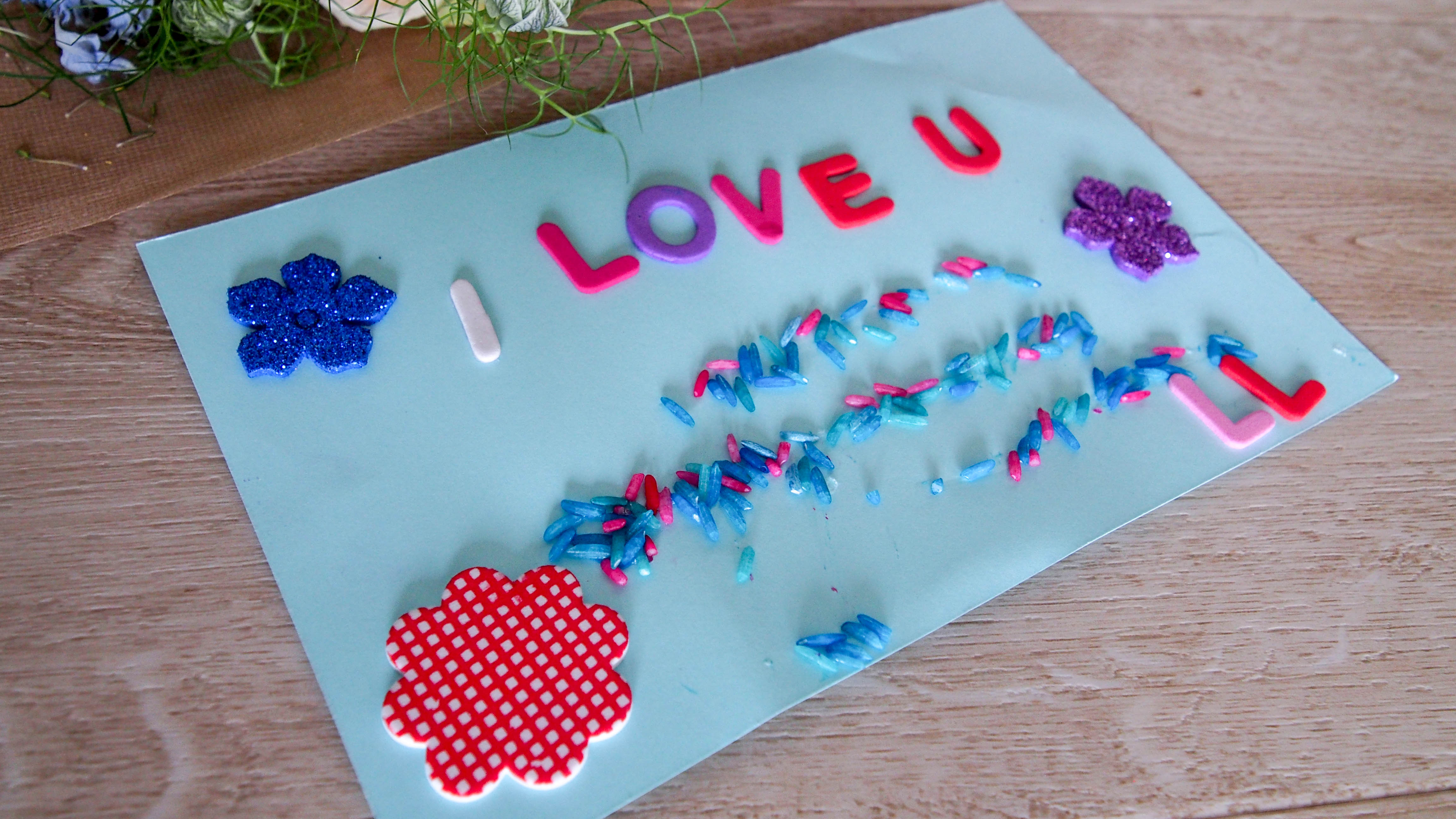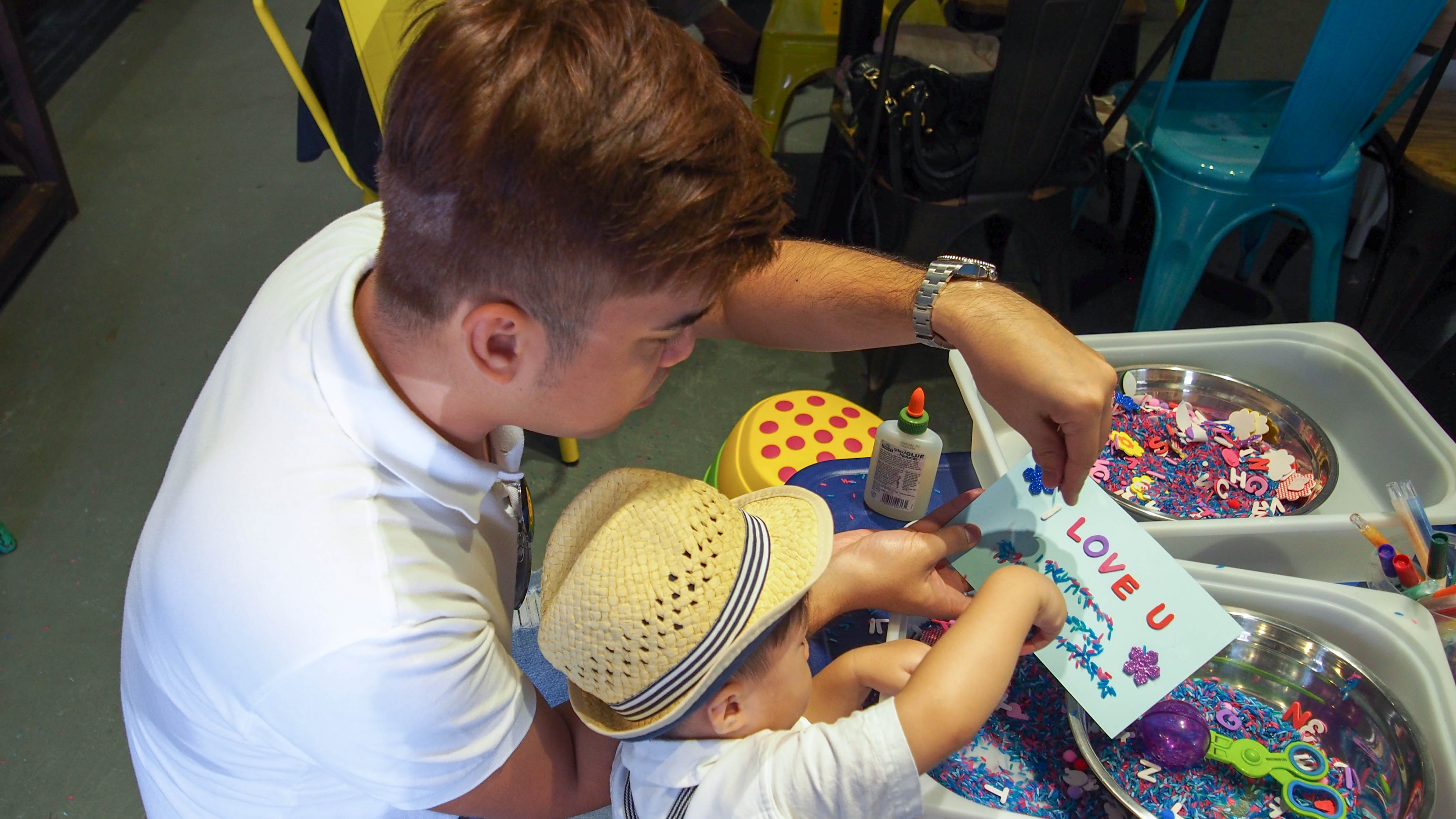 In between flicking coloured rice all over the place, Laurent actually made me a really cute and colourful mother’s day card with the help of daddy!